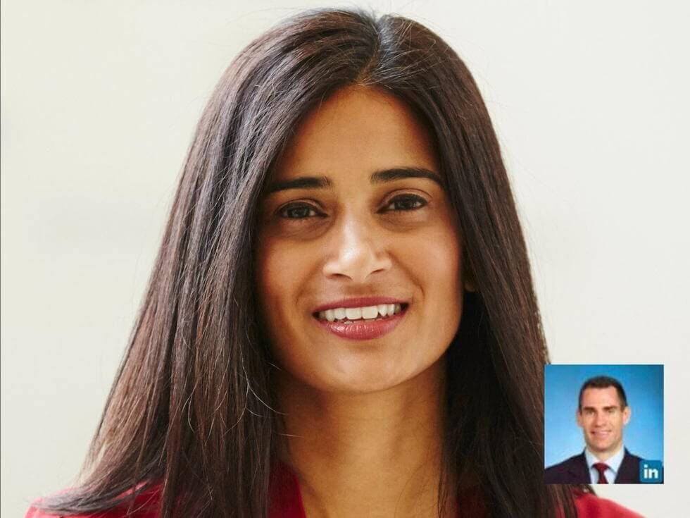 【卡梅伦·泊伊萨切(Cameron Poetzscher):Airbnb首席运营官瓦尔萨·拉奥(Varsha Rao)的丈夫】拉奥与澳大利亚出生的泊伊萨切相识于哈佛商学院。1997年结婚时,他们分别效力于麦肯锡公司和投行高盛。自从那以后,他们逐渐走上这两家硅谷热门科技公司的领导岗位。泊伊萨切如今担任打车应用Uber的企业发展总监,他与妻子育有2个孩子。