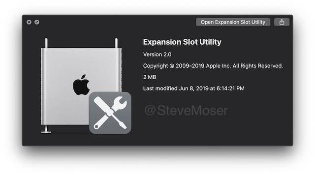 目前正在测试中的 macOS Catalina 中包含了 扩展槽实用工具 app(Expansion Slot Utility )。这款 app 是专门为全新 Mac Pro 设计的,用来管理和配置 PCI 扩展卡。全新 Mac Pro 提供了 8 个 PCIe 扩展槽。
