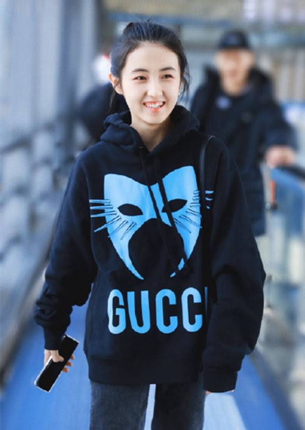 除了演技优秀以外,张子枫的私服穿搭往往也很有亮点。日前,张子枫现身机场,身穿黑色猫头卫衣,搭配经典牛仔裤,一身搭配很是简洁。素颜现身走在机场上,遇见粉丝的镜头丝毫不畏惧,还露出了自己甜美的微笑,样子也是相当的可爱了。