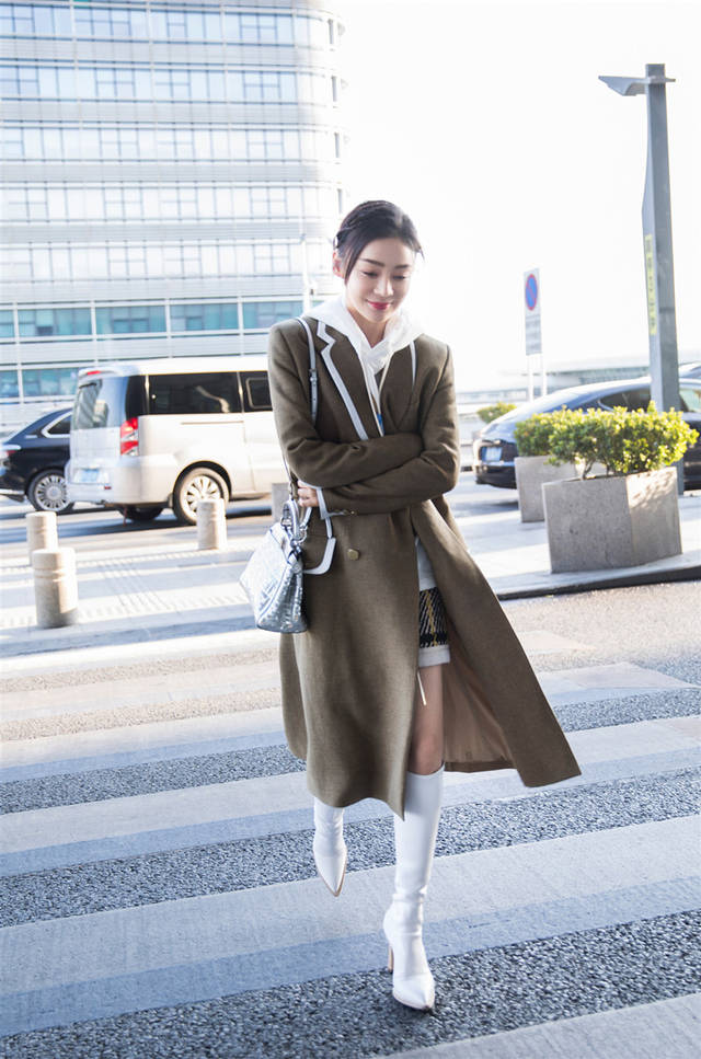 女明星不怕冷,不止体现在各大活动的红毯中,在机场私服里也能感受到。近日,袁姗姗现身某机场,扎着低马尾的她淡妆现身,气色状态绝佳。她身穿驼色毛呢大衣又A又飒,挺括的H版型显得她身材纤细高挑,很是精神。