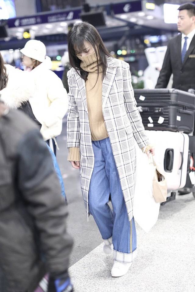 近日,郑爽在机场现身,身穿浅色格纹大衣搭阔腿牛仔裤品味在线,用杏色高领毛衣捂脸可以说是非常注重保暖了,边撩头发边低头疾行的样子更是相当的飒爽可爱。