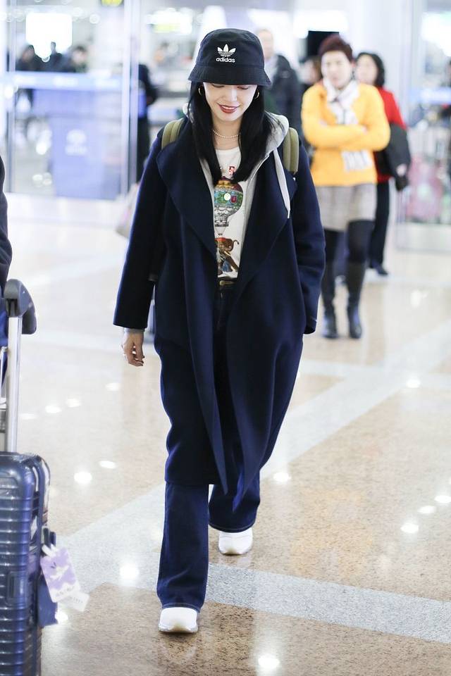 近日,姚晨现身北京机场,头戴渔夫帽身穿长款风衣,下搭直筒牛仔裤加小白鞋,皮肤白皙状态佳,每每迈步低头浅笑的样子更是美极了。