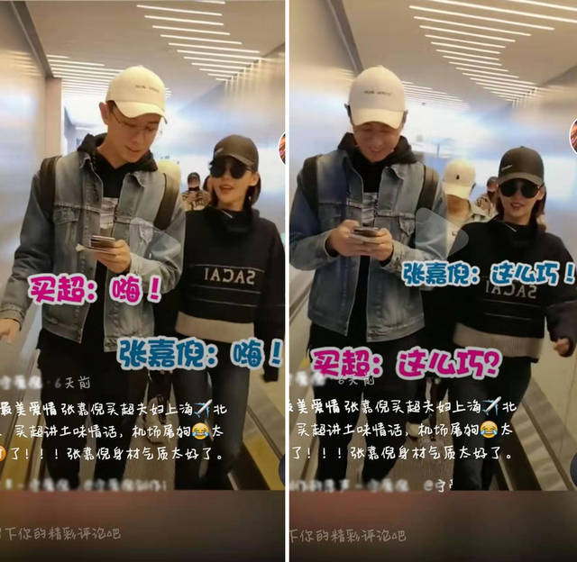 但是两人的相处并不像老夫老妻那样平凡,每次现身机场大都是手牵着手,甜的不像是已经结婚5年的夫妻。近日,夫妇俩还装不认识,在机场玩起了搭讪情景剧。当天买超穿牛仔外套配黑裤,头戴白色棒球帽,打扮年轻有范,一点不像是俩娃爸,张嘉倪穿拼接卫衣,下配蓝色牛仔裤,造型也是时尚年轻。两人一同走在传送梯上,突然张嘉倪对老公说了一声:嗨!