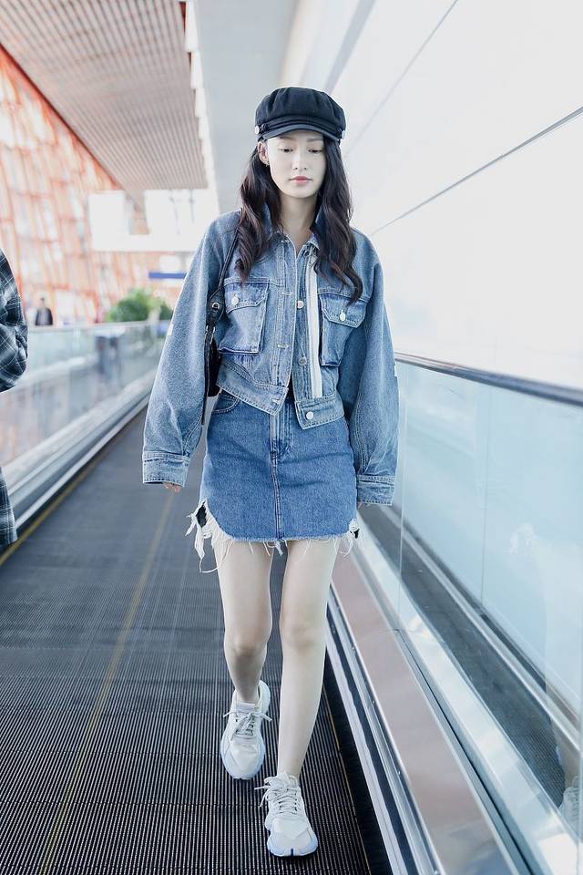 就连生活中穿着私服的她也是美的出众,白色的蕾丝背心+牛仔外套,短款的牛仔衣刚好能露出细细的腰线,穿着半身裙的好身材尽收眼底,较胖的灯笼袖休闲慵懒,相较于一般的牛仔衣更添俏皮减龄的感觉。