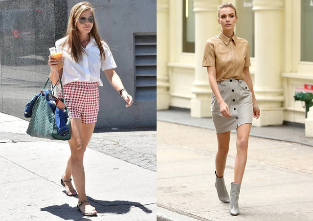 ♦日常简单的白色衬衣选搭,还有就是和红色格纹短裤组合,简约的造型,包包和鞋子的款式和颜色有多种搭配选择。气质的出街选搭,那么黄色衬衣和灰色格纹短裙组合,选择灰色高跟短靴,简约气质的造型。