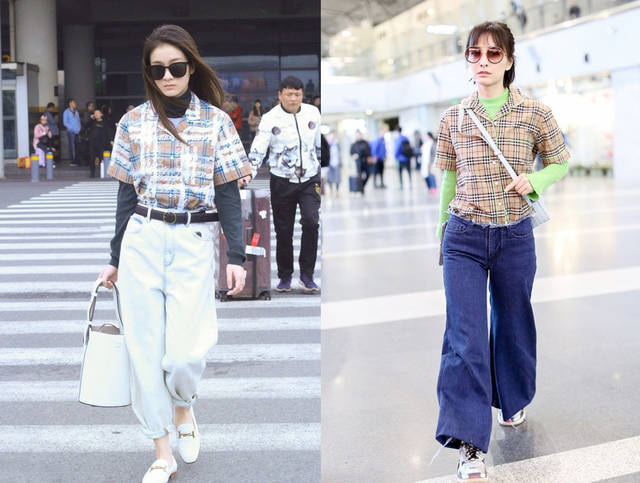 首先是白色短袖T恤,像章若楠这种带有印花的白色短衬衫,清新又有趣味,内搭黑色打底衫,新潮又能御寒挡风,一举两得。相比之下,超模何穗的白色短袖衬衫更为通勤正经,配咖色直筒裤穿,很nice的一身春夏上班穿搭。