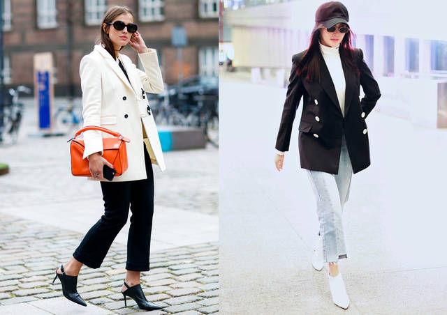 ♦简单的黑色或者牛仔九分裤,都市气质的穿搭造型和西装组合是推荐搭配,白色西装+黑色内搭+黑色九分裤+黑色高跟鞋,彩色的包包(黄色或者蓝色调)组合。简单的穿搭组合,黑色西装+白色内搭+拼色九分牛仔裤,短靴选择白色。