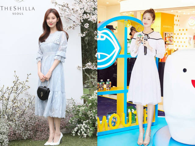 每年春夏时节,最喜欢蕾丝连衣裙的莫过于国内女明星了,明星们穿上蕾丝元素,瞬间显得高贵有气质。就像徐贤这件淡蓝色蕾丝连衣裙,袖口有荷叶边点缀,满满都是少女心。颖儿的白色蕾丝连衣,裙穿上清新高贵少女一枚。