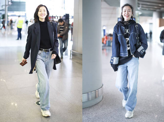 近几日,大表姐穿了一身西装+阔腿牛仔裤的造型,宽松的廓形条纹西装,配上大气带风的阔腿裤,鞋子选择白色球鞋,整个穿搭帅气通勤。除了西装外套,刘雯最近还喜欢牛仔衣配阔腿牛仔裤,同样是搭配白球鞋,让人看起来时髦而舒适。