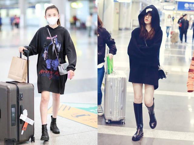 首先说卫衣裙,今年元气少女宋祖儿是非常喜爱卫衣裙的,她喜欢穿黑色款卫衣裙,人像印花的黑色卫衣裙,个性无比,既露出了白皙的大腿,同时又轻松遮藏了肚子赘肉。第二身连帽款卫衣裙+黑色中筒靴的造型,也是时髦帅气。