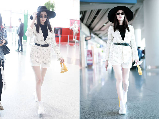 首先看张天爱,她近几日穿了一身白色西装配白色短裤的造型,上身带着无厘头印花的白色西装配黑色打底衫,下身白色短裤加白色球鞋,头戴一顶黑色太阳帽,这是要提前过夏天的节奏啊。