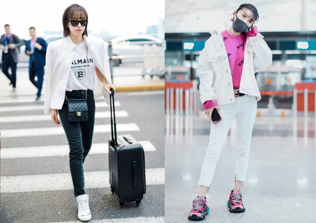 ♦选择白色外套的时候,一种是简约款西装,像宋茜白色西装和黑色紧身裤搭配,简单的款式和色调。对于选择休闲款的白色外套和白色裤装组合,淡淡的粉色内搭和组合,简单的少女心色调选搭。