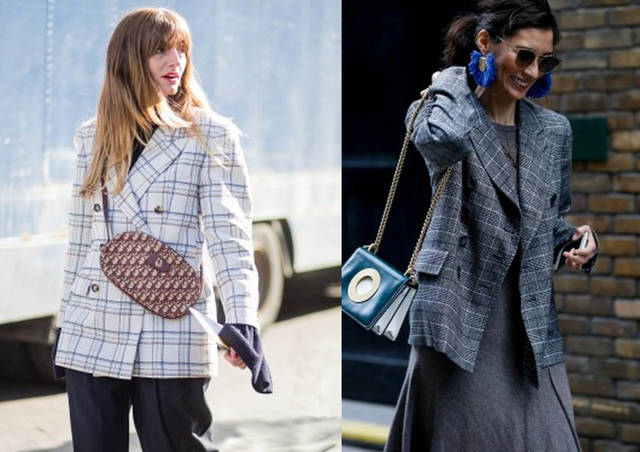 ♦灰色格纹西装的穿搭,日常休闲选择浅蓝色衬衣和白裤装搭配,还有就是选择西装腰带收腰款搭配黑色阔腿裤,白色衬衣工整的出街装,选择彩色的包包出街,款式上复古的腰包也是推荐单品,或者是手提包。