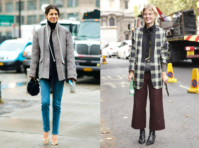 首先是格纹上衣,最经典的格纹上衣莫过于时髦通勤的格纹西装了,格纹西装时髦摩登,适合于多种场合穿。格纹西装在选择上也很多种多样,有细腻的小格纹,有随性的大格纹,还有多种颜色拼接而成的彩色款格纹。