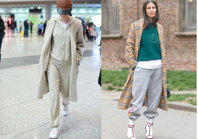♦浅色调的选择是首选款,上图一中的整体统一色调搭配,整体针织的穿搭选搭白色内搭和鞋子,淡淡的造型出街。或者是上图二中选择黄色格纹风衣,搭配深绿色针织毛衣和灰色针织运动裤,三种颜色的组合穿搭,搭配黑色包包出街。