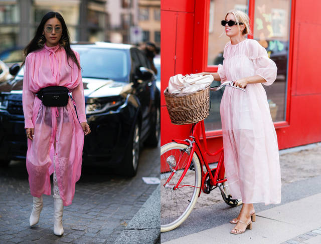 今年最受欢迎的透视单品莫过于透视连衣裙了,透视的连衣裙有女人味的同时搭配又很省心,是今年春天达人和明星们的首选,透视连衣裙中最受宠爱的是粉色系透视连衣裙,粉色+透视,既又妩媚感,同时又有了几分甜美的少女感。