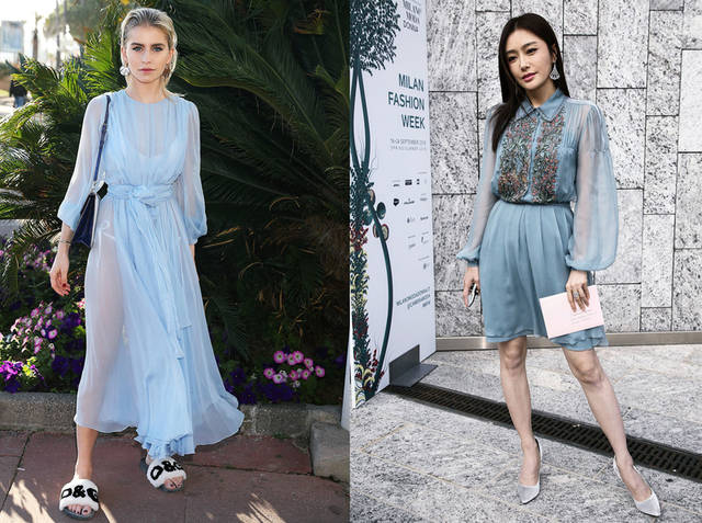 除了透视粉色连衣裙,时髦精们也喜欢蓝色系透视连衣裙,本就清新静谧的蓝色搭配上透视元素,就更显春天的清爽轻盈感了,此外,蓝色透视连衣裙不仅有性感女人味,同时还显得女性比较高雅有品位。
