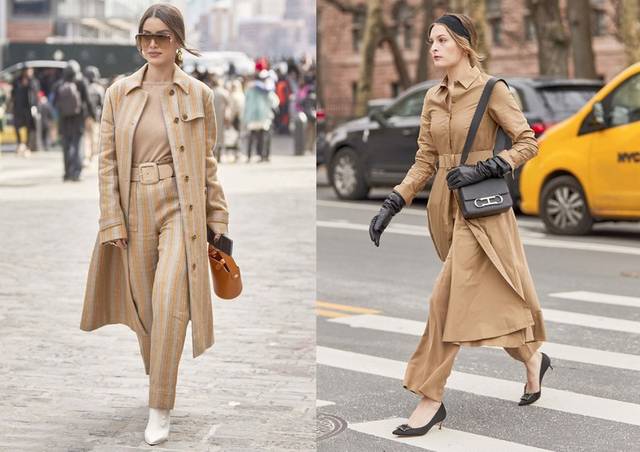 ♦先来看一组简约款式组合,上图一中的风衣腰带收腰,简单的色调,选择白色内搭,帅气的造型。上图二中的简约三色搭配,是推荐的借鉴穿搭,简约的白色内搭就可以,还有就是白色的高跟短靴是推荐首选。