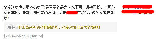 “家人吃了两个月孢子粉,上周体检肾囊肿、肝囊肿都神奇的消逝了。”