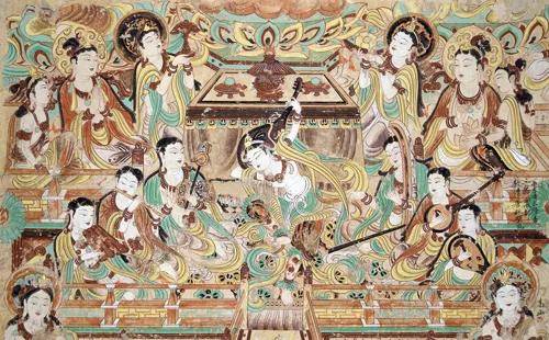 据统计,敦煌数个石窟群共有历代壁画作品五万多平方米,