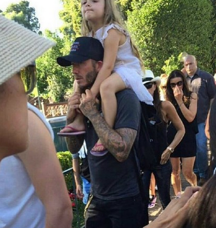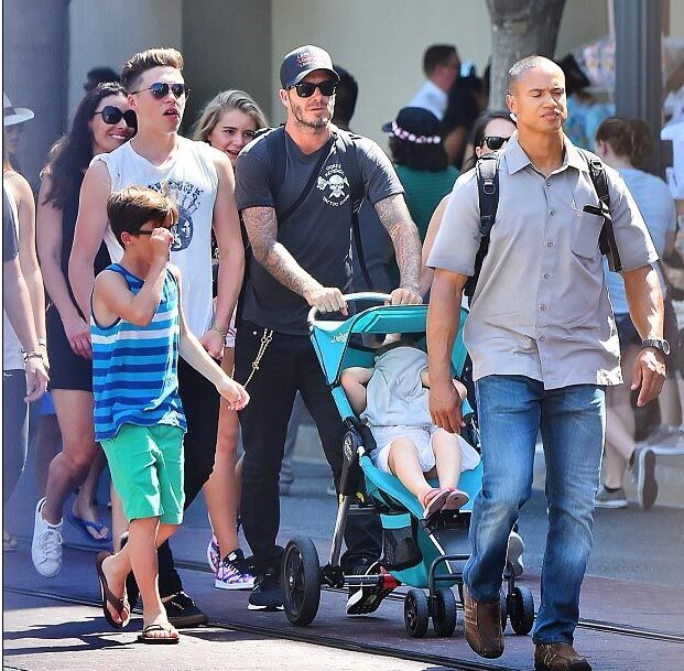 据国外媒体报道,昨日,贝克汉姆与维多利亚夫妇带着儿女现身迪士尼乐园,一家人黑超遮面,打扮低调。而小七虽然已经长大了,可还是不愿下地走路,一路被爸爸妈妈用小车推着,十分“大牌”。