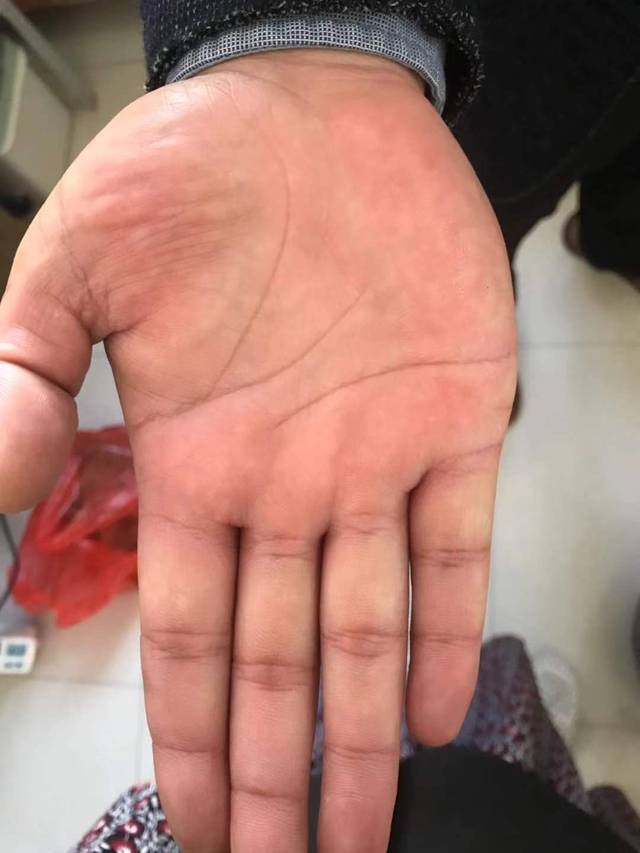手相分析:从日主整个手形来看,为长方形的掌形,颜色白里透红掌形较好,五指没有缺失。