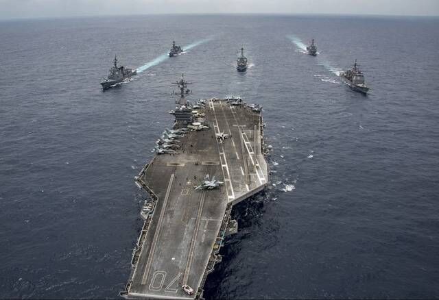 数天前,国际媒体公布了一张有关美航母穿越霍尔木兹海峡的卫星照片,根据照片内容显示,在航母编队附近,有大量不明身份的小型船只,据猜测,该批小型船只极有可能是伊朗海军的导弹快艇,对于该则报道,五角大楼并不打算置于评论。