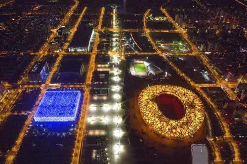 图为9月2日晚的鸟巢、水立方。