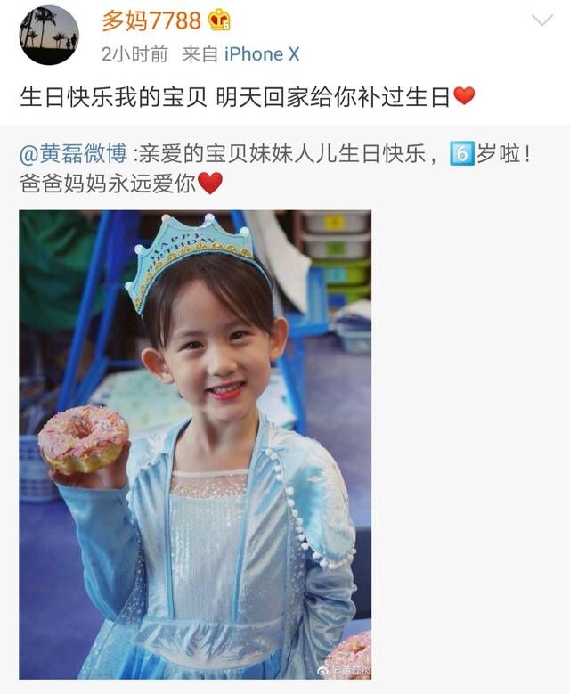 都说女儿从出生就和爸爸亲,这点在黄磊家完全体现出来了。从多多和多妹呱呱坠地,黄磊就一直视她们姐妹俩为掌上明珠,时不时的晒女儿也成了黄磊的日常打卡内容,很多人是看着多多和多妹长大的。近日,黄磊一家为6岁小女儿庆生,妹妹打扮成冰雪女王吃甜甜圈,模样酷似爸爸。黄磊为6岁小女儿庆生,妹妹cos冰雪女王,俊美模样像极爸爸年轻时。