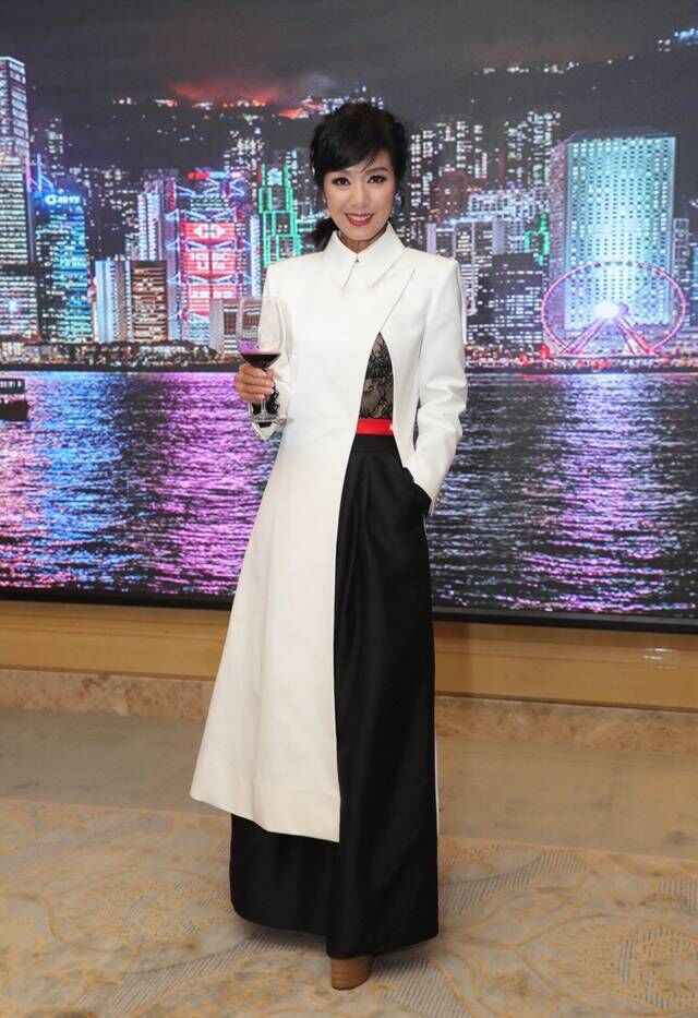 今年64岁的米雪选择了一件有非常有设计感的礼服,白色的外套,下摆做了开叉设计,所以看起来既像礼服裙又像外套,再加上衣长的长度已经快要到了脚踝的位置,所以可以算得上是一衣两穿了,领部的设计更是精致减龄,下身米雪搭配了超高腰的黑色阔腿裤,裤子是属于超肥的廓形,特别显气质。一旁的汪明荃今年已经72岁了,汪明荃身穿银色的旗袍,这种中国传统的女士旗袍很适合汪明荃这种落落大方的气质,这件旗袍面料选择的是上等的绸缎,颜色也和一般的旗袍不一样,选择了这种金属质感的面料,裙身上还点缀了黑色和银色的粗细不一的条纹图案,这种古典的旗袍和金属颜色的两种不同的亮点,碰撞在一起,真的是很有看点,再搭配大的珍珠耳环,显得非常有气质。两个人都是半百的年纪,但是穿搭都超级气质,完全不比少女们差。