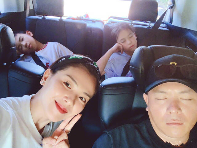 这一次大家也能够见到刘涛一家四口集体出游,而且丈夫和孩子都熟睡了。