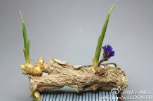 老姜发芽更简单,不用泡水就很好看,加上一小朵勿忘我,可以摆放好长时间。
