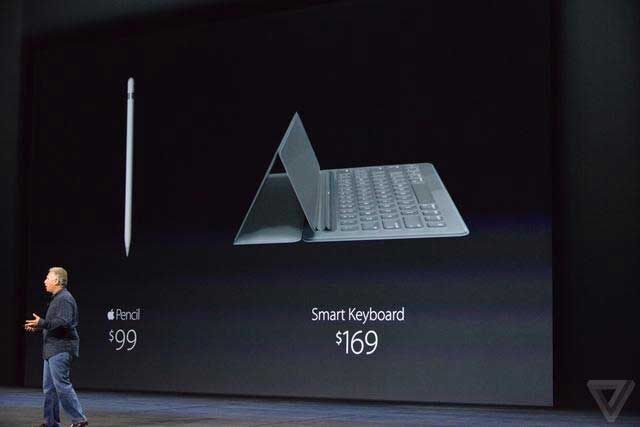全新的iPadPro拥有银色、黑色和太空灰三种颜色,容量上拥有三个版本,售价分别为32GBWifi版本799美元、128GBWifi版本949美元、128GB4G版本1079美元。而同期发布的Pencil售价为99美元,智能键盘售价169美元。以上全部新品均将在十一月正式开卖。