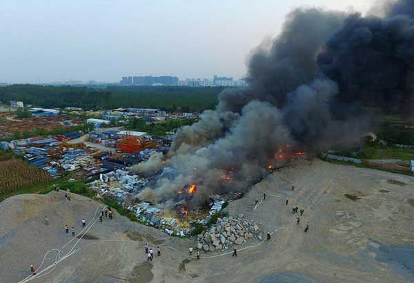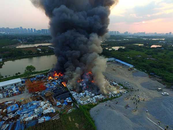 9月9日傍晚17时许,合肥市骆岗机场内发生火灾。主跑道堆放的废弃电器等失火,熊熊火光冲天,现场满是浓烟。目前,未发现有人员伤亡或被困。