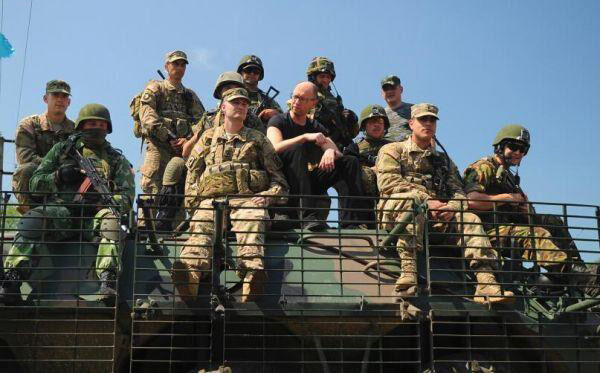 资料图:亚采纽克和乌克兰士兵在一起
