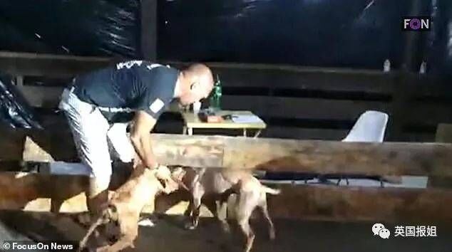 警方是在凌晨时分开始突袭的,当时天还黑着,警方突袭进去时一个疑似裁判的男子正在场中分开两只互相撕咬的狗。