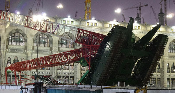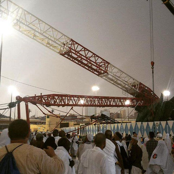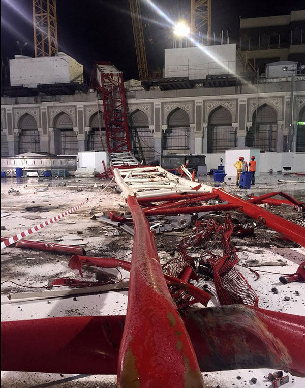 当时,准备参加今年朝觐活动的上万名来自世界各地的穆斯林正在麦加大清真寺参与宗教活动,而这座清真寺还在进行施工,数十座塔吊矗立在大清真寺内外。