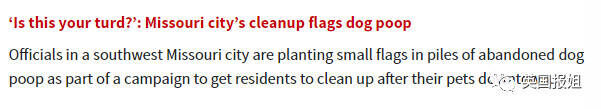 1.密苏里狗屎不捡问题严重,为提升居民素质,警方屎上插标签,上书: “这是宁的屎吗?”