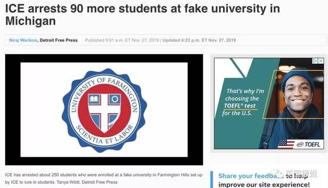 ICE(美国移民及海关执法局)逮捕了90名国际学生,他们都是密歇根的一家假大学的学生。