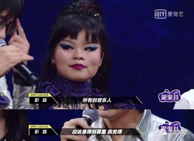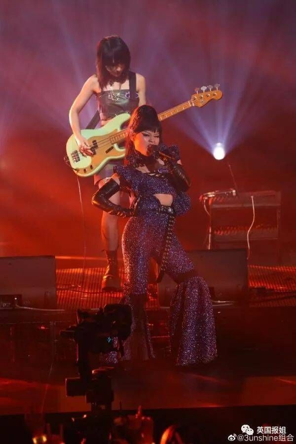 化着浓妆、戴着舞台风的假发、穿着blingbling的紫色复古舞台装,被粉丝们称为C皇的她,用力吼出“Everybody”这句歌词的时候,可以说是惊艳了全场。