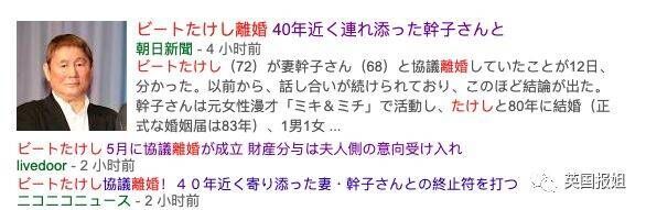 今天众多日媒都在报道,已经72岁的日本著名导演兼演员北野武与68岁的妻子干子女士协议离婚,结束了40年的婚姻。