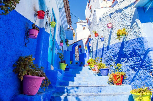 从色彩学的角度来看,蓝色代表着沉稳、深邃。在舍夫沙万这个蓝精灵的世界里,却是轻松的、明快的。让人不由自主放慢脚步,倾听历史的呼吸……