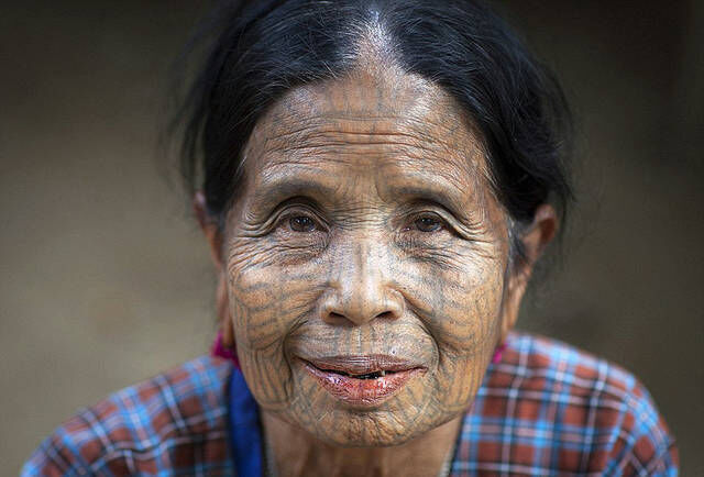 在缅甸西北部的偏远山区,至今仍生活着一些以纹身为美的古老部落,如马根族(Magan)和钦族(Chin)等。这些部落的显著标志是:女子脸部和颈部刺满繁琐复杂的纹身,不过,因为政府的禁令,这种风俗已濒临灭绝边缘。