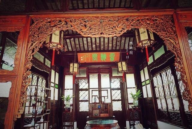 同时“罩”在室内还是重要的装饰物,较挂落有更多的花格纹样和雕刻题材,除用细小木条搭接外,往往使用整块银杏、紫檀、黄揭等高档木料予以雕镂。常见的有藤纹、乱纹、整纹、雀梅、喜桃藤等各种雕纹花饰。
