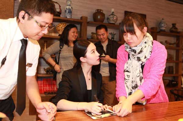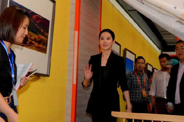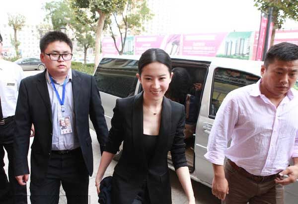 刘亦菲干练低胸装秀性感 扯衣防走光