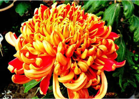 此款养花引荐的菊花,它的姓名叫做一品红,可是它的色彩不全是红色,背面的花瓣是金黄色的,开足像球,就像是黄金般的芍药。