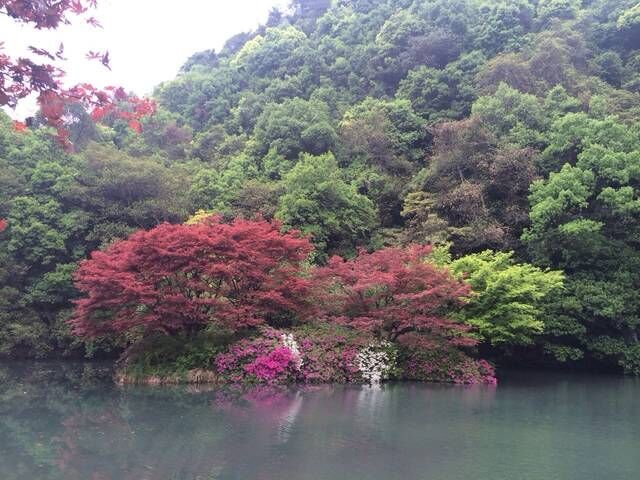 上午,穿行在林间小路,似乎时光倒流,身旁原始树木散发出远古的滋味。在随处可见的阳光里,抬头看见这些树木,在风中无拘无束欢笑着,似乎全世界的快乐和美好都会集在他们身上了。仰望前方的山峰,大自然的饱经沧桑和鬼斧神工,造就了摄心心魄,让人久看不厌的美景。山庄中的每座山每块石都有一段美丽的传说。走进大自然,其实是丰盈了心灵。