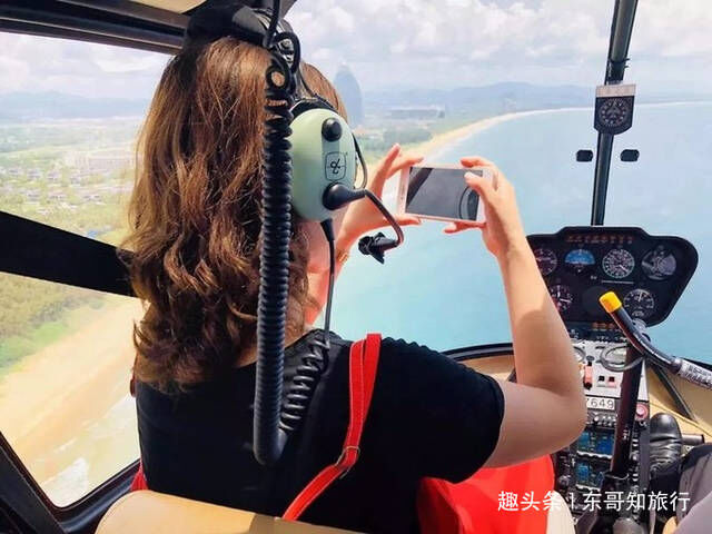 三亚的别的一个玩法就是体会直升机了,没错,咱们大三亚也能够玩直升机了,用天主视角观看整个三亚。咱们不用管直升机的型号,总归,这种为了观景而出产的直升机,观景是它的第二大优势,它的前面三分之一的面积都是玻璃,就是为了让你摄影,看景。