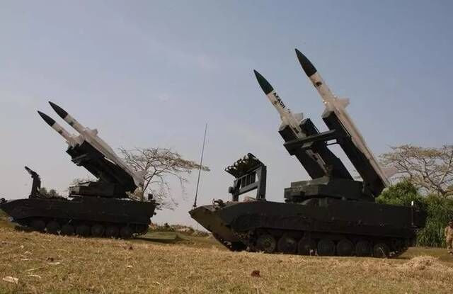 据介绍,阿卡什防空系统是印度自主研发的一款中近程防空系统,该防空导弹是根据引进前苏联的SA-6防空导弹为蓝本而研发的。作为苏联研发的第一种野战中程防空导弹系统,SA-6防空系统可以有效应对来袭的中、低空亚音速和跨音速飞机以及巡航导弹等目标。不过萨姆-6导弹存在着很多问题,比如电子元器件笨重等问题,这前苏联时代武器一直存在的问题,萨姆-6自然不能免俗。