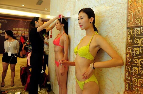 9月20日,模特导师为参赛选手测量身高、三围、身材比例等“事业线”。当日,“鄂旅投置业杯”第十一届中国超级模特大赛湖北赛区初赛在湖北武汉举行。150余名参赛选手经过量体、泳装走秀、自我介绍等环节的激烈角逐,最终将有50名晋级湖北赛区总决赛复赛环节。
